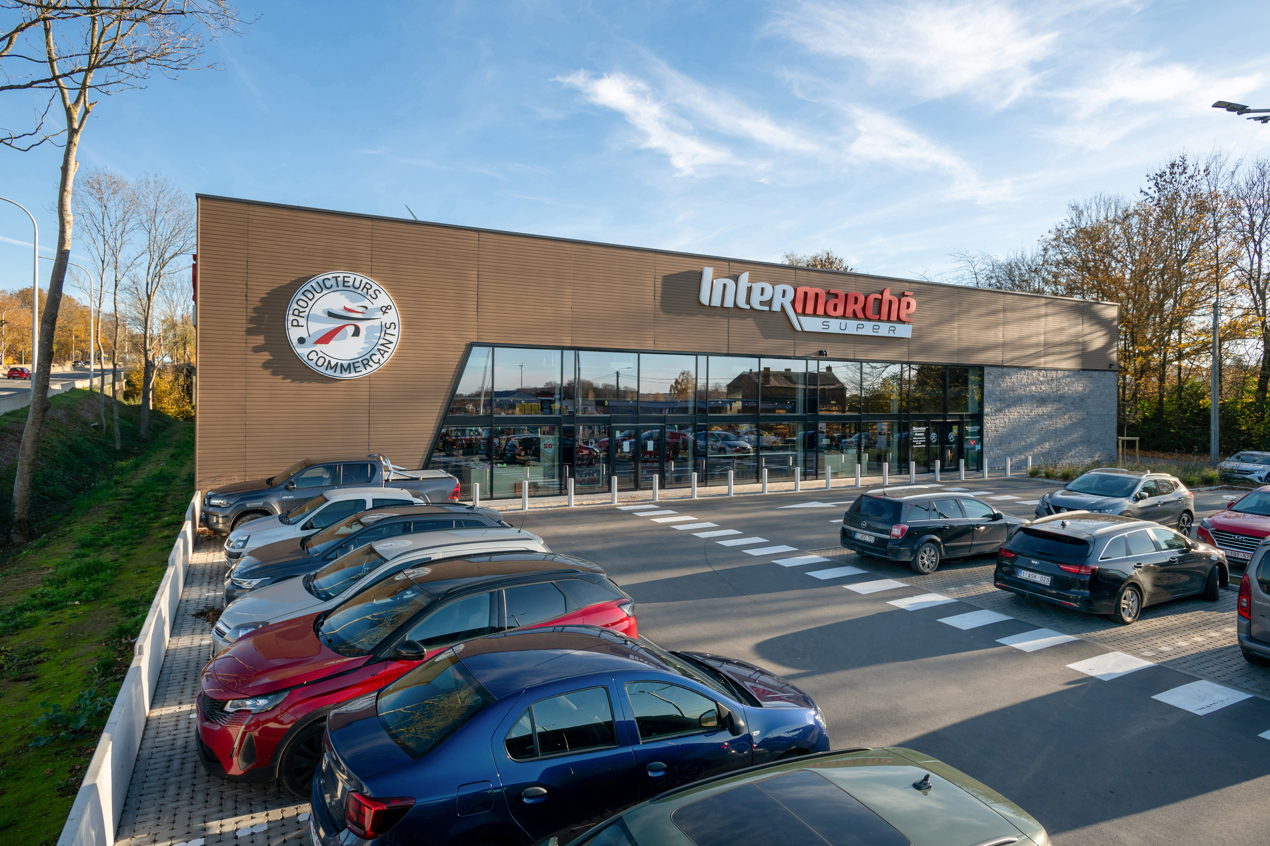 Client : PARCOBS - INTERMARCHE S.A. Localité : RUMES Projet : Extension d'un point de vente INTERMARCHE Date : 2021-2022 Photos : Whitevision