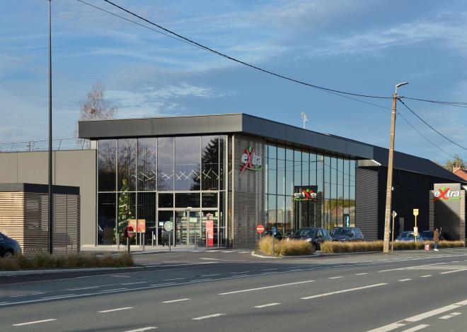 Client : EXTRA DISTRILED CENTRE sprl Localité : PERUWELZ Projet : Commerce Date : 2019 Photos : Whitevision